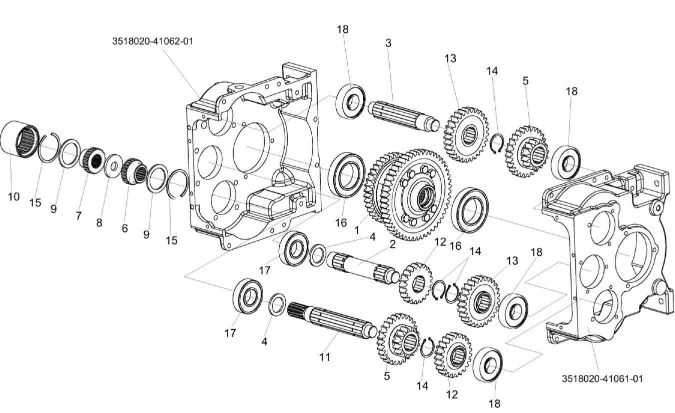Коробка диапазонов КВС-2-0107230 (Валы, шестерни)