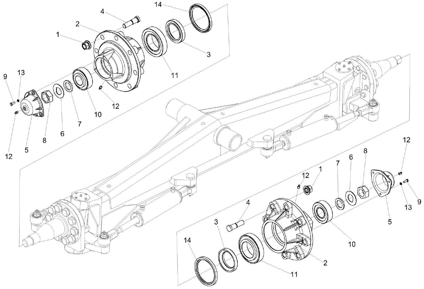 Мост управляемых колес КВС-2-0109000 (установка ступиц)
